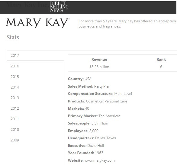 Take note, that Mary Kay operates in 40 countries around the world and the $3.25 Billion is just from 1 country (USA).